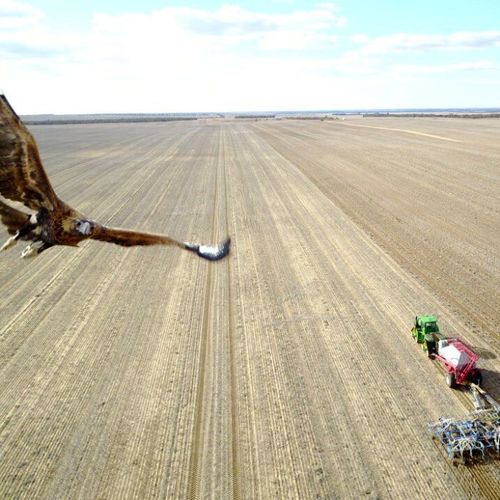 A wedge-tailed eagle has attacked and badly damaged a drone as it flew over farm machinery in Western Australia.