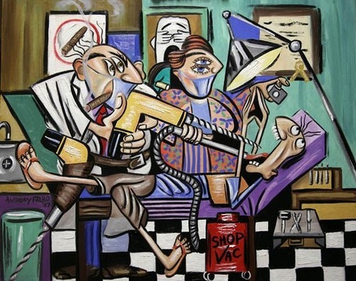 The Dentist Is In, Root Canal Beautiful Original Museum Quality Open Edition print/ poster By International American Artist Anthony Falbo Size: 18x 24 Excellent Condition Medium :Fine art paper You can contact Anthony Falbo At falboart [!at] aol.com ABOUT FALBO Anthony Falbo’s art has a very noticeable and unique artistic flair that today is recognized and collected throughout the world. With a steady demand internationally the value of owning an authentic Falbo has soared. His Cubestraction series has, and still continues to receive tremendous praise throughout the art community. Falbo’s art can be seen in many of the most esteemed private collections. Being well known for his works in the Light and Dark, Cubestraction, Genesis, and Impressionist series, is what makes Anthony Falbo recognized as one of the most versatile master painters in the twenty first century. His works are envied by many but duplicated by no one. The Cubestraction series is all about color and composition. Working in the cubism style gives Falbo even more freedom to express himself. His goal with each painting within this series is to create a colorful work of art, with a simple composition that portrays different events in life. Dealing with a variety of subjects such as music, religion, sports, animals and people, is what gives Anthony Falbo a chance to take things to the extreme. His fluency of colors in the Cubestraction series is an uncanny way of portraying the truth, and brings a bold array of harmony that seems to vibrate off the canvas.